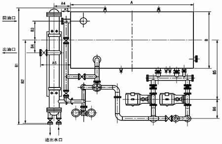 ≥250L/min稀油站,采用蒸汽加热油箱中的润滑油,仪表盘尚多一检测冷却器进出水管压差的仪表,其主要部件均另外装于基础上;而≤125L/min稀油站的全部部件都装在油箱上,为整体式结构。